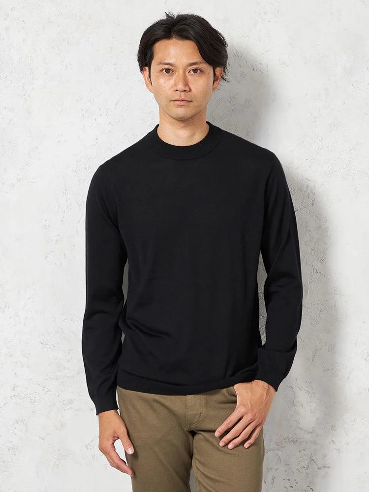 【ハンドウォッシャブル】モックネック ベーシックニット 秋冬 【Smart Pick!】(ブラック)
