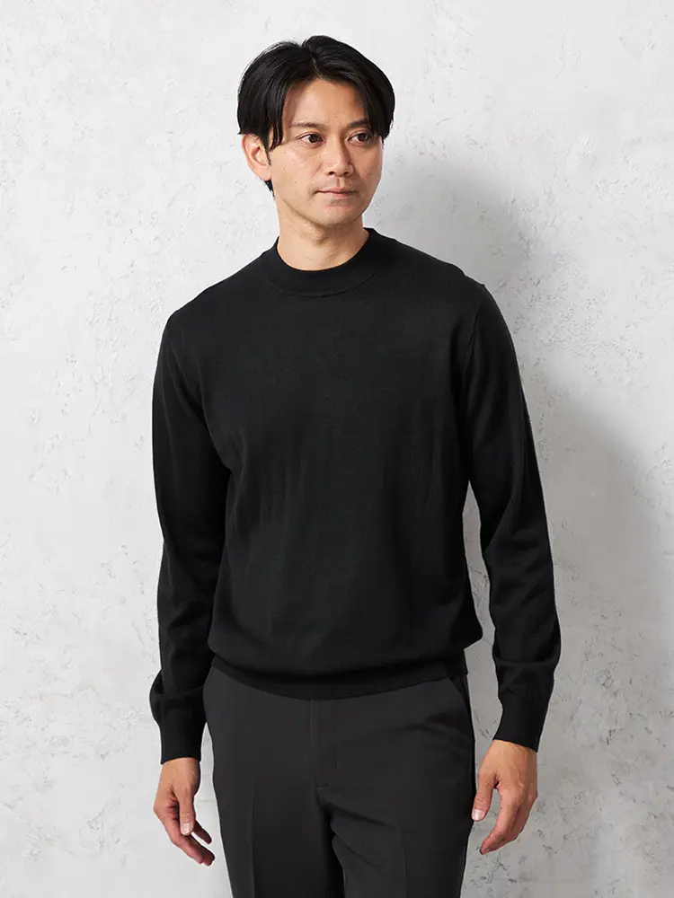 • ブラック 【ハンドウォッシャブル】モックネック ベーシックニット 秋冬 【Smart Pick!】 | はるやま公式通販