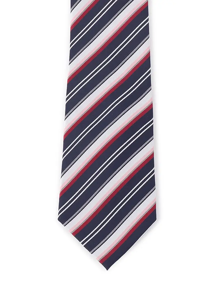 【シルク混】ネクタイレギュラーリクルートタイネイビーストライプnero通年