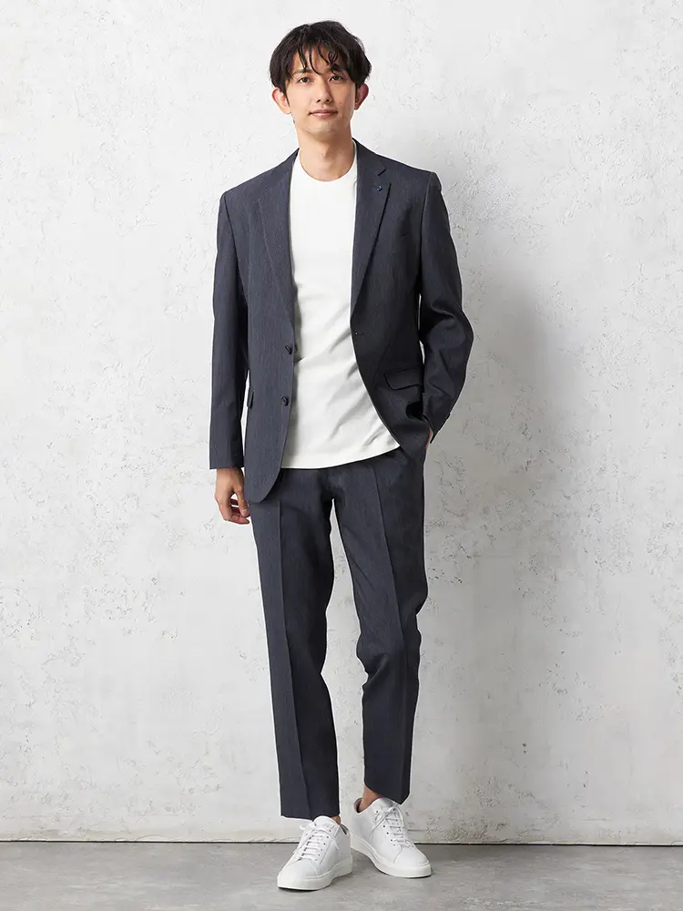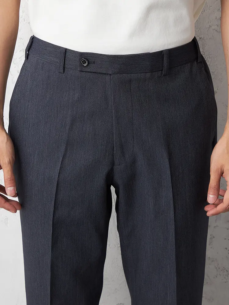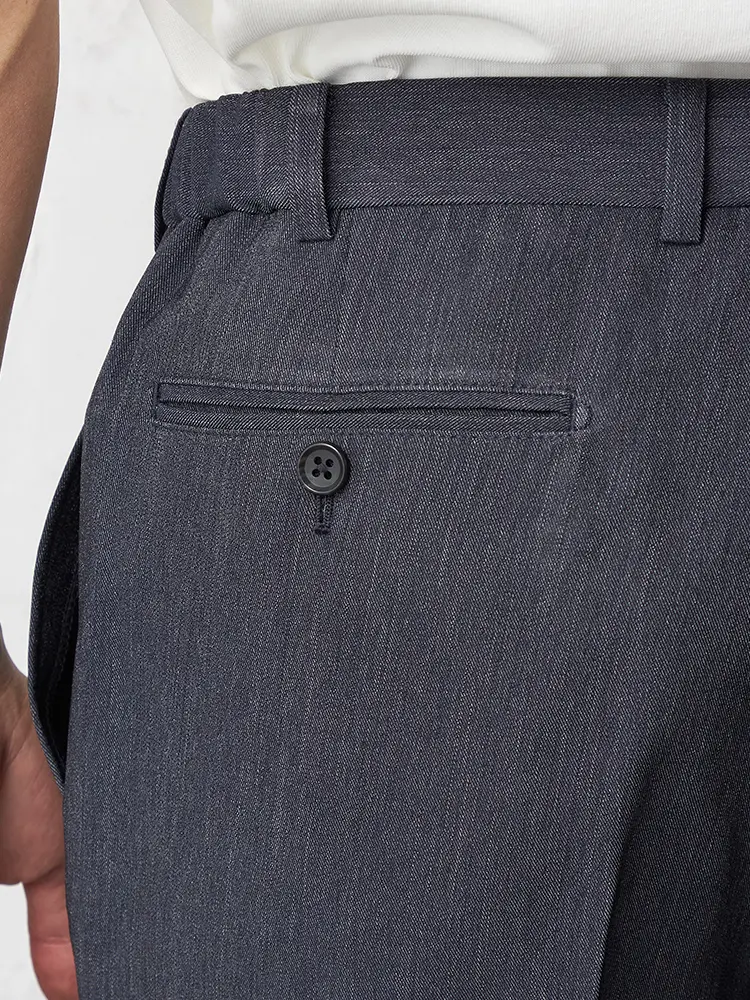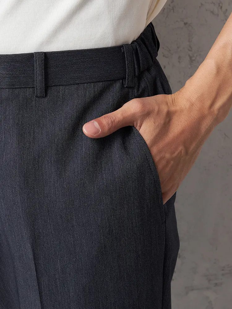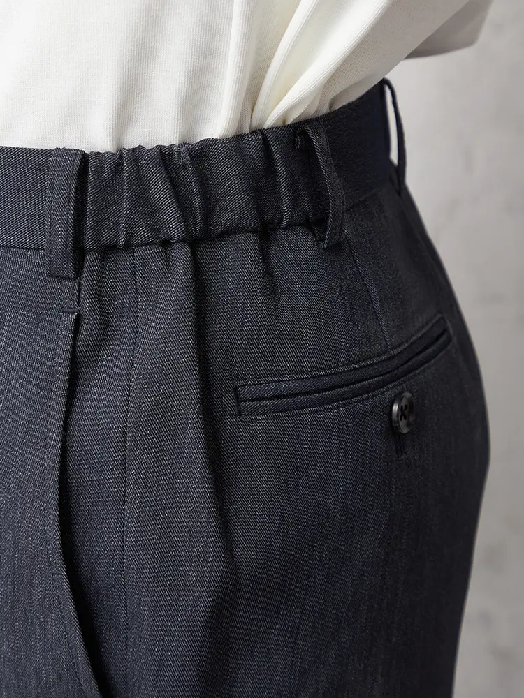 表情豊かなデニム調の風合いで個性を演出するノータックパンツ。