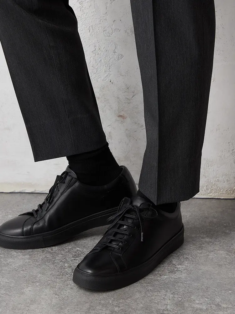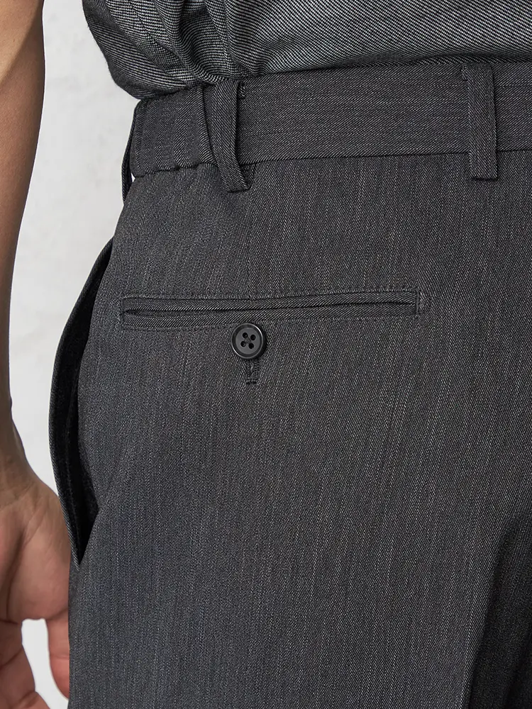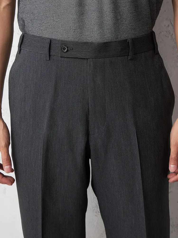 独特のムラ感が味わい深い、ブラックデニム調のノータックパンツ。