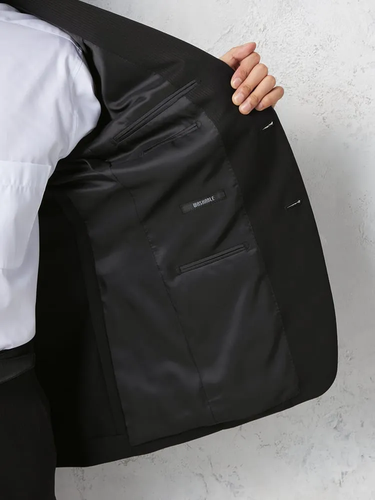 【即納】スーツ2つボタン【WEB限定】上下ウォッシャブルブラックストライプ