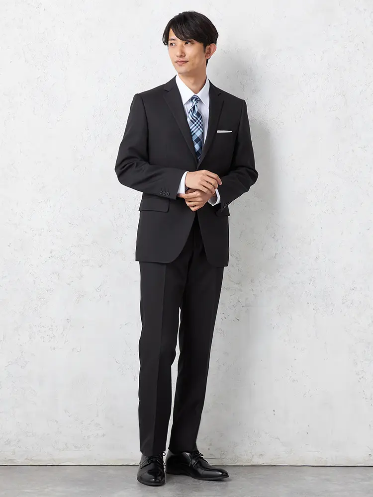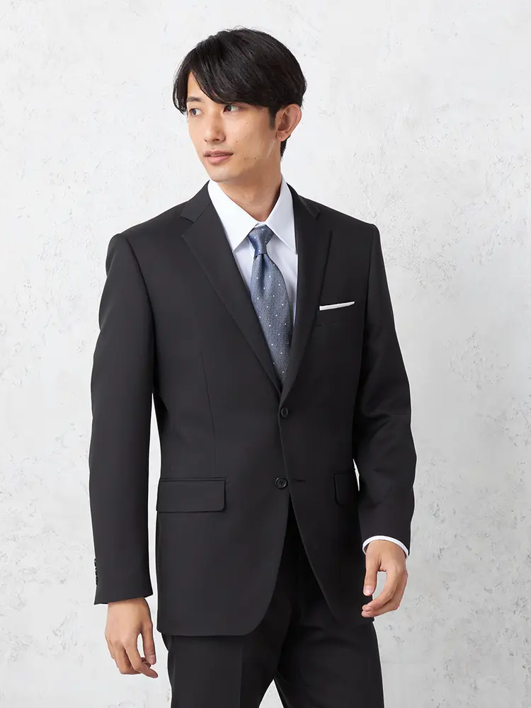 【即納】スーツ2つボタン【WEB限定】上下ウォッシャブルM.グレー小柄3シーズン対応