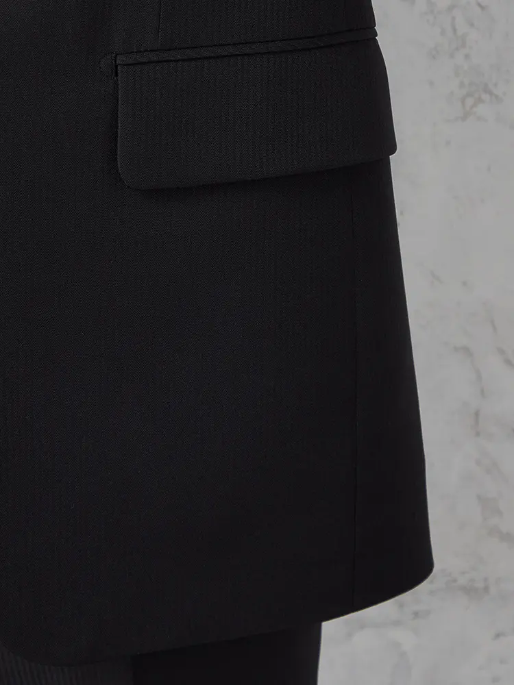 切り込みが1本のセンターベントデザインです。細身でスッキリとしたシルエットが特徴で、快適な着心地を提供します