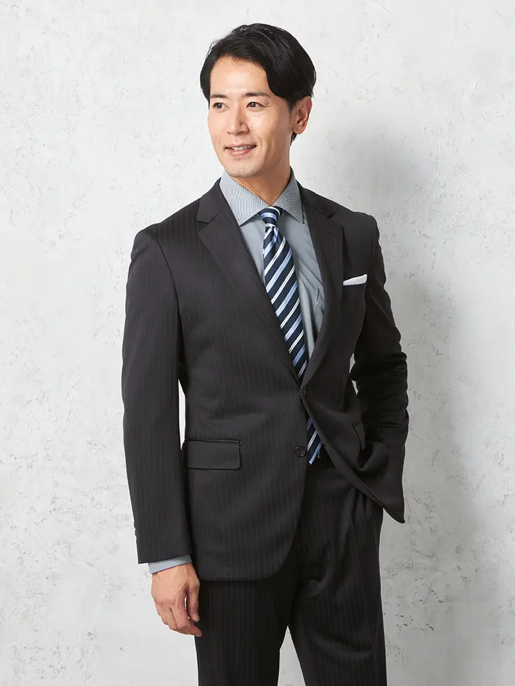 ワードローブに備えておきたい、汎用性の高いストライプ柄スーツ。