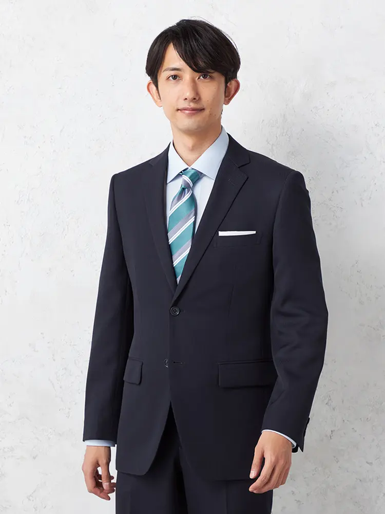 【即納】スーツ2つボタン【WEB限定】上下ウォッシャブルネイビーストライプ