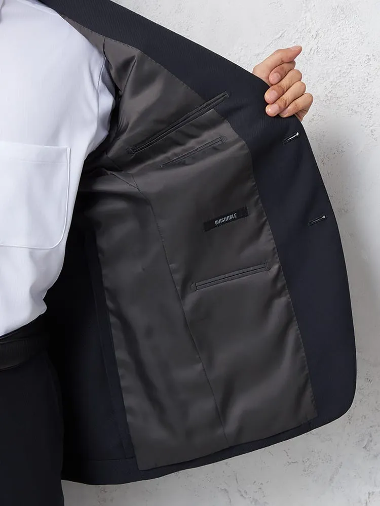 【即納】スーツ2つボタン【WEB限定】上下ウォッシャブルネイビーストライプ