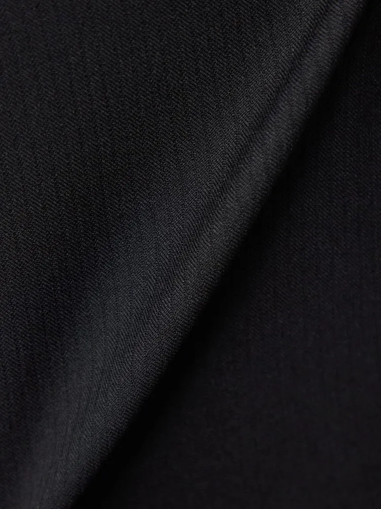 パンツの腰回りに生地の折り込みがなく、スッキリとしたシルエットを実現します。シンプルで洗練された印象を与え、すっきりとした着こなしが可能です。