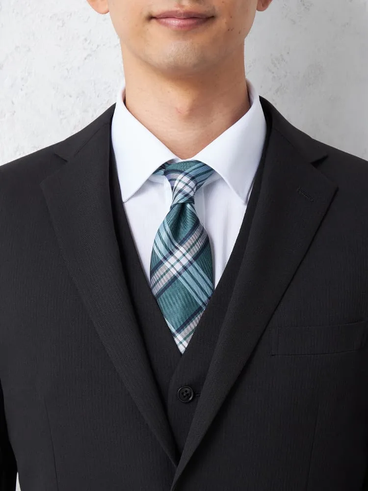 ベストが付いた3ピース仕様で、様々な着こなしをお楽しみいただけます。