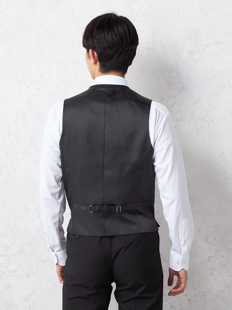 【即納】スリーピーススーツ 2つボタン【WEB限定】上下ウォッシャブル ブラック シャドウストライプ 3シーズン対応